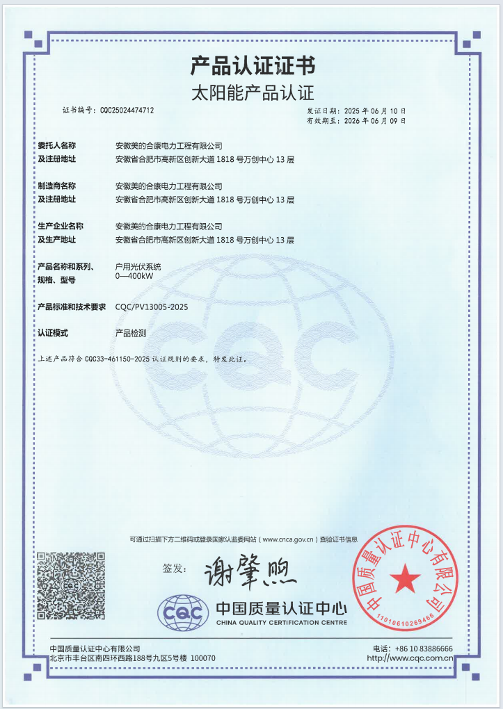 戶用光伏系統(tǒng)CQC認證49.7kW-CQC25024474712